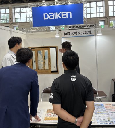 弊社の専用ブースでは木製の内窓【ゴトモクのウチマド】や非住宅の事例【自社工法のGW1200】を中心に説明させていただきました。